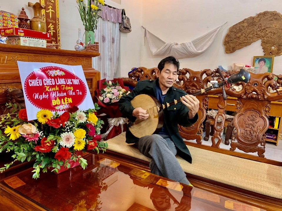 As for artistic activities, he singly did research to compose Cheo works, compile the scenarios, produce the programs for the Cheo theater of the village to perform in the galas in other provinces. Len has been with Cheo singing for 60 years now, fully mastered hundreds of Cheo melodies and actively taught this artistic subject to enthusiasts.